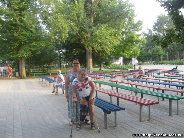 Добрый вечер, всем кто еще заглядывает к нам в группу, чтобы узнать новости! В группе затишье и мало кто заходит почитать. Ну я решила не много отдохнуть и поэтому сама не очень часто в группу заглядываю, для того чтобы написать новости. Сегодня к нам приходил Ксюшин лечащий врач Анатолий Александрович, а Ксюша в это время занималась дистанционно английским, а я под окном корпуса загорала в это время. Доктор попросил еще раз принести Ксюшины снимки, здесь ей еще в одной проекции сделали рентген позвоночника и он ходил с нашими снимками к рентгенологу советоваться, по поводу того давать Ксюше вертикальную нагрузку или нет. Они утверждают, что сильно пере утруждать ее не стоит, но не большими дозировками ходить все равно надо.Но мы уже и так стараемся каждый день понемногу ходить, одеваем на одну ногу специальную лангету, ортопедические ботинки с наращенной подошвой на левой ноге и ходим потихоньку. Меня сильно расстраивает тот факт, что Ксюшу все сильнее и сильнее перекашивает в тазобедренных суставах, как это все остановить ни я ни врачи не знают. И еще хочу вам сегодня пожаловаться((( Ездим в этот санаторий практически каждый год, во многом этот санаторий хорош, не смотря свою совдепию))) Но что меня всегда поражает и расстраивает- это организация лечебного процесса. То я снимки Ксюшины бегала искала по всему санаторию и не нашла, а только на следующий день они отыскались(( А сегодня пошла к завотделения по поводу того, что от массажа мы отказались, для того чтобы у Ксюши было по больше ЛФК, а нам поставили только 10 занятий, хотя мы приехали на месяц, процедур взяли не много. При чем сегодня я пошла уже второй раз, в первый раз просидела у него под дверью пол часа и ушла т.к. надо было уже на процедуры бежать. И сегодня уже уставшая после процедур и похода на море, вместо того чтобы лечь и отдохнуть, пошла к заведующему, опять просидела там пол часа, но дождалась, объяснила ему всю ситуацию, он меня отправляет к лечащему врачу, а там у него народу столько, что за пол часа не обернешься((( Я заведующему говорю: "Почему я должна бегать туда сюда и исправлять чьи то ошибки? Я приехала сюда чтобы лечить ребенка и сама хочу хоть не много отдохнуть?" Но он меня даже слушать не захотел, но я пошла для начала к медсестре и выяснила, что Анатолий Александрович, все правильно написал:" ежедневно ЛФК 30 дней", а у Ксюши вместо дней было написано 30 минут, и мне на радость не пришлось к Андрианову бежать, но я там еще пригрозила, что к начмеду пойду или к директору санатория, видимо это еще помогло и тогда заведующий спустился и все мне в книжке исправил. Вот так мы тут "отдыхаем", скучать не приходится, постоянно что нибудь да приключается! Пока ни кого в нижнем парке нет, мы после ужина ходим с тростями.